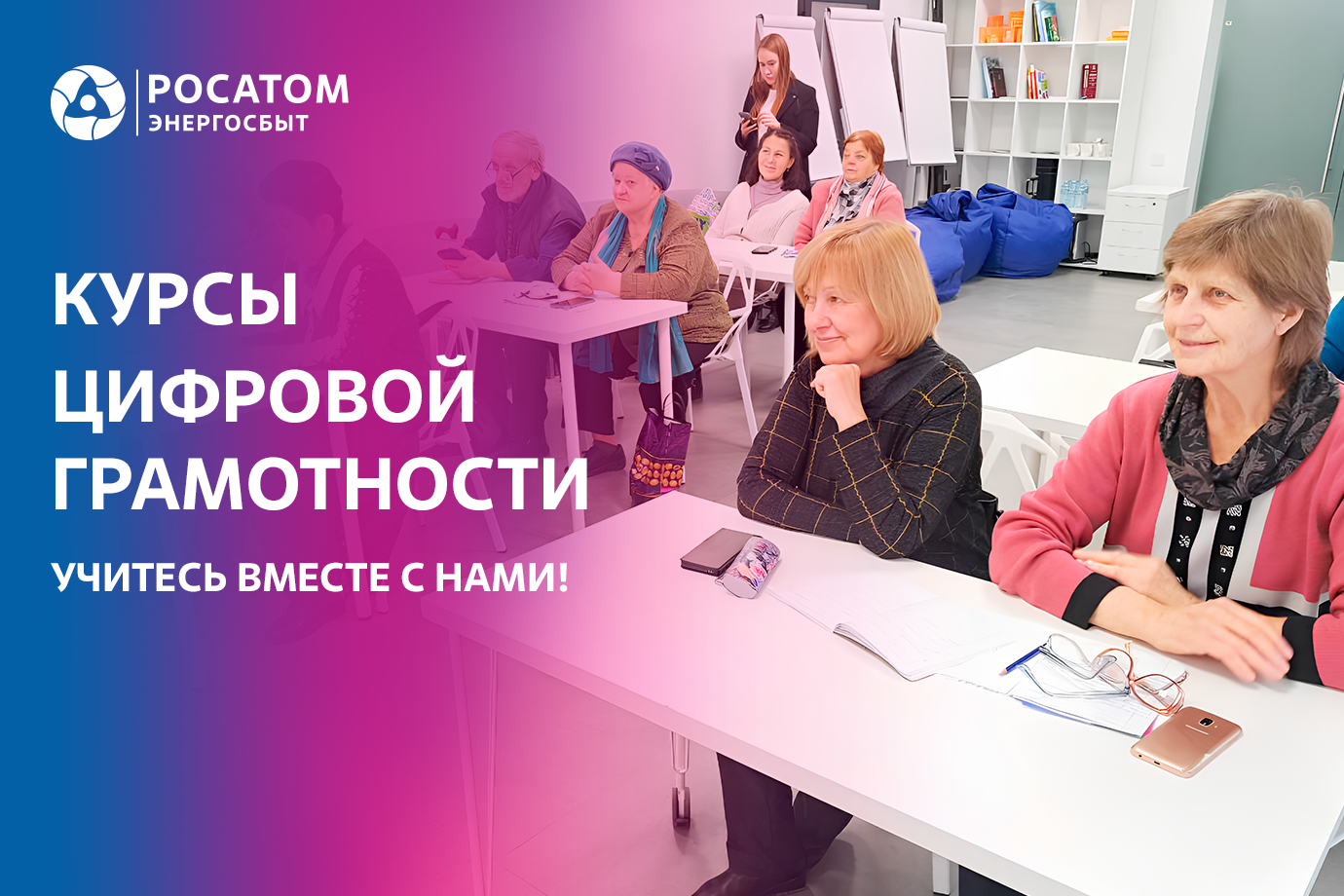 Наша компания, следуя стратегическим целям и задачам Госкорпорации «Росатом», особое внимание уделяет развитию человеческого потенциала. В фокусе внимания – люди «серебряного возраста». Мы совместно с компаниями-партнерами проводим курсы цифровой грамотности, где готовы поделиться знаниями, которые помогут ориентироваться в быстро развивающемся цифровом мире.