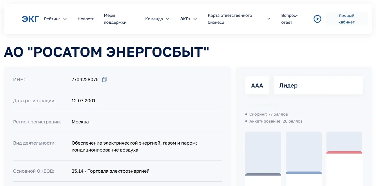 Высокий уровень ЭКГ- рейтинга свидетельствует о соответствии деятельности компании высоким стандартам экологической политики, социальной ответственности и взаимодействия с государственными структурами.