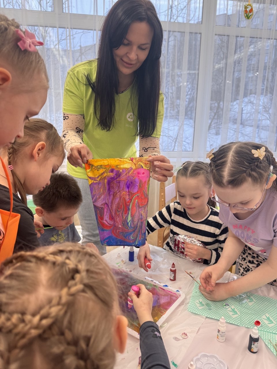 Волонтеры мурманского филиала провели творческий мастер-класс с наборами «Эбру» для детей с нейроотличиями.