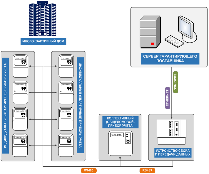 Также протокол RS-485 может быть использован как резервный способ связи, в т.ч. для обеспечения связи общедомовых приборов и УСПД.