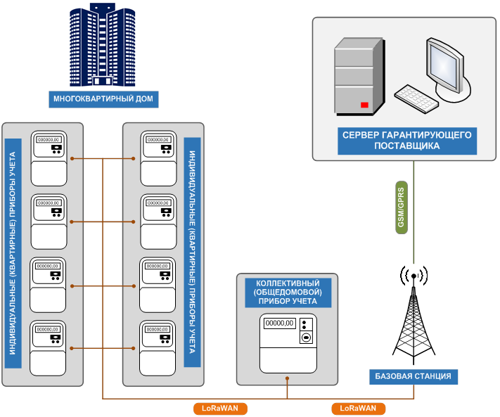 Применение данной технологии целесообразно в случае, если проектируемый МКД находится в зоне устойчивого приёма базовых станций связи LPWAN - LoRaWAN гарантирующего поставщика, по согласованию с гарантирующим поставщиком об использовании базовой станции.